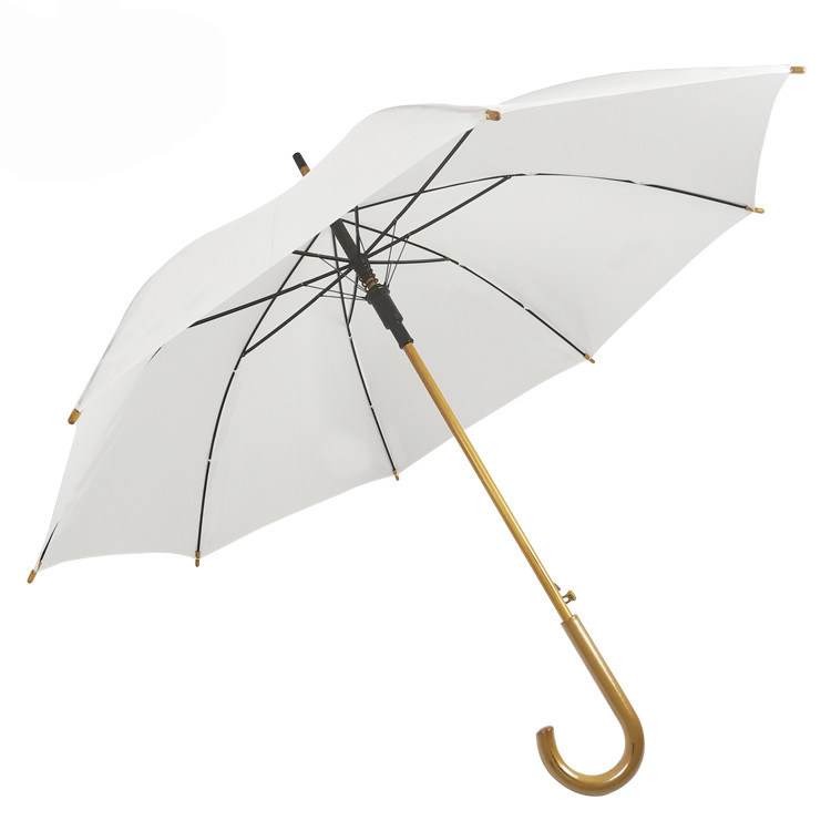 Автоматически открытый длинный стекловолокнистый рамный зонтик с деревянной ручкой и индивидуальным дизайном 10
